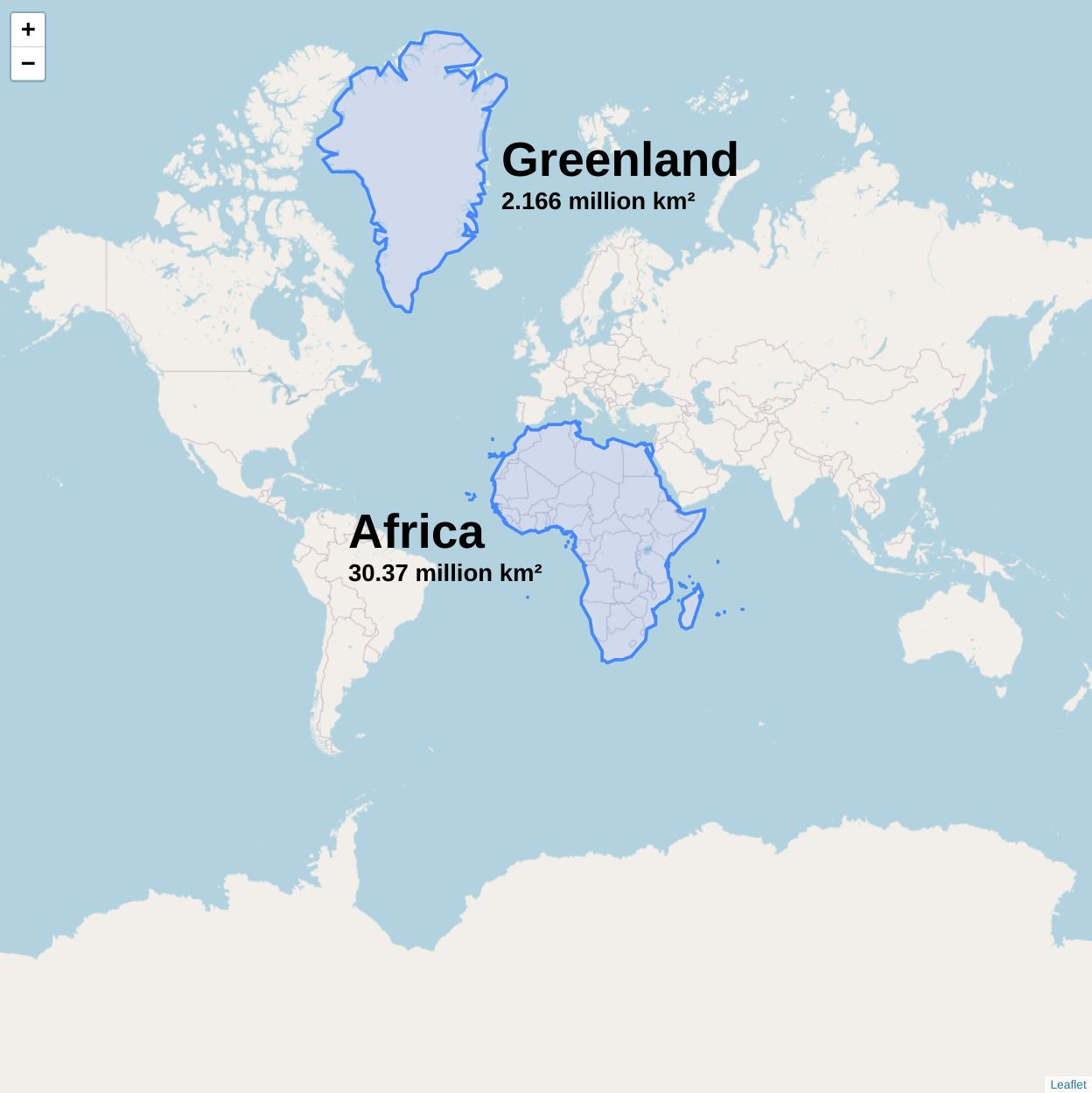 The Mercator projection takes our spherical world and maps (projects) it to a rectangle, which is very convenient for viewing on a rectangular sheet of paper or screen, but produces a distorted view of the world that inflates the size of objects near the poles.