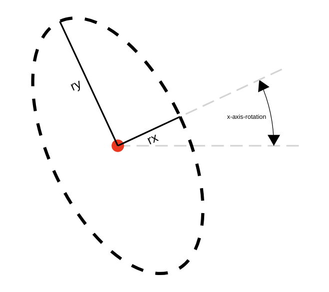 rx,ry,x-axis-rotationparameters) - specify the end points of the arc (start point is implicit, end point is specified by