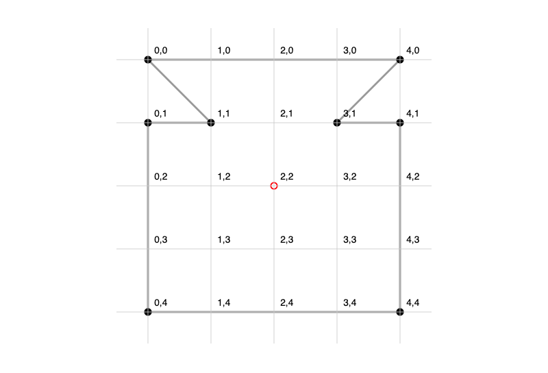 We begin by telling it to “move” to the coordinate of the first black circle at (0,0), then proceed to draw lines to each of the other absolute coordinates. The final segment is drawn automatically when we “close” the path with Z.