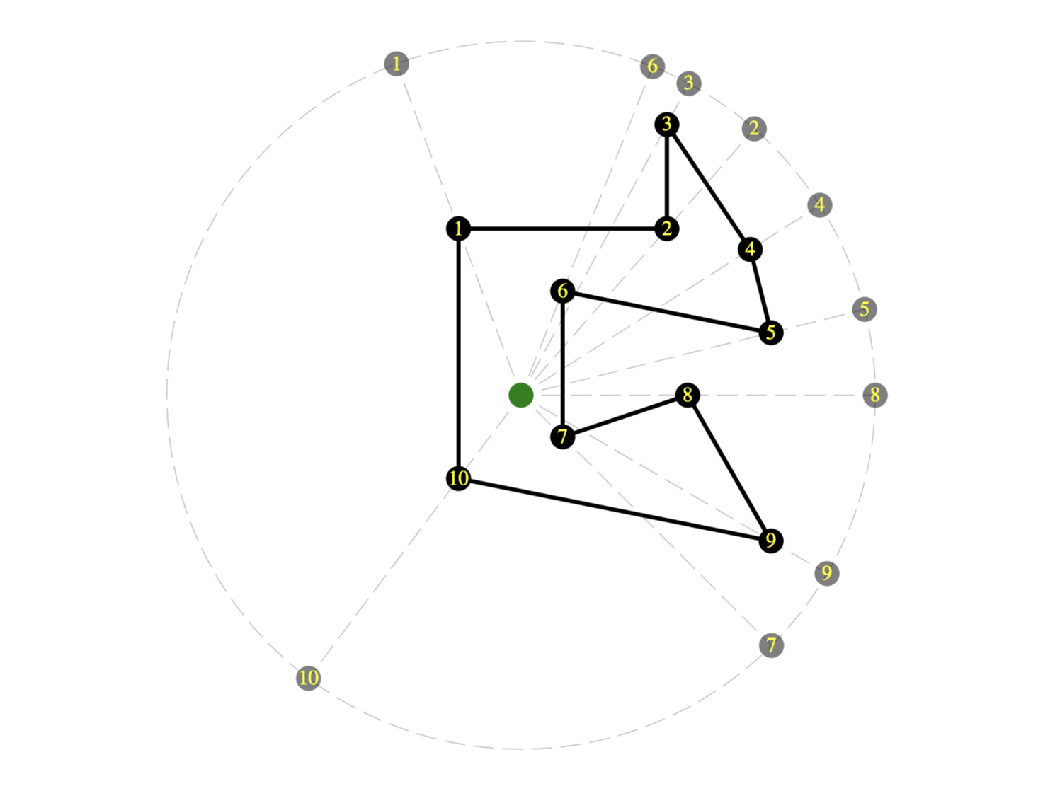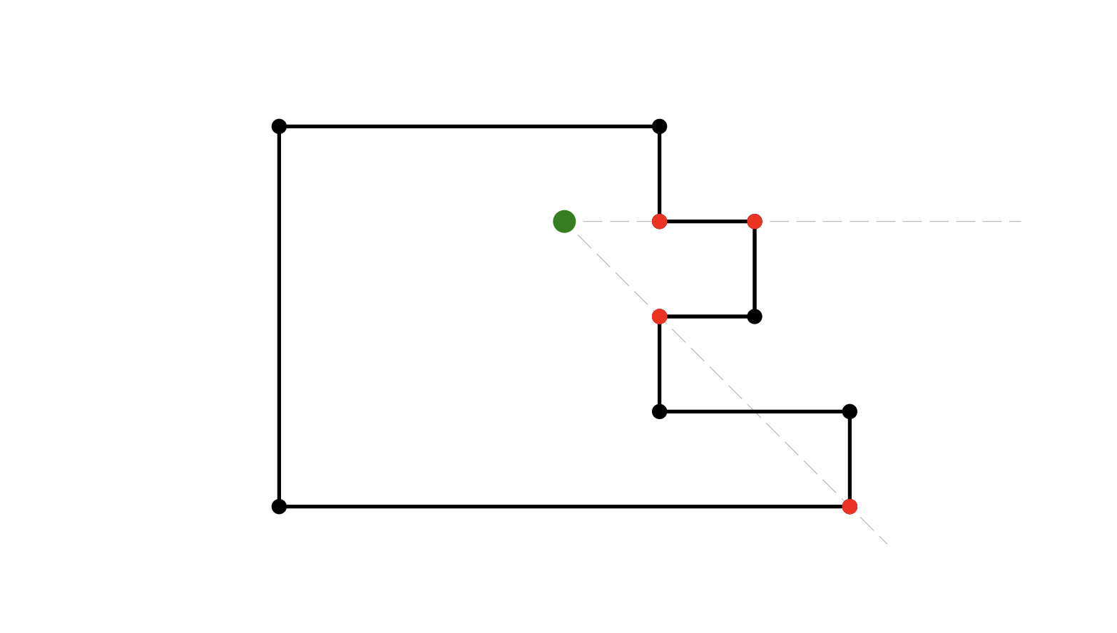 Because rooms can potentially be composed of complicated arrangements of walls, Step 3 is important to ensure that the points of our visibility polygon are arranged clockwise around its boundary to produce a continuous shape from start to finish.