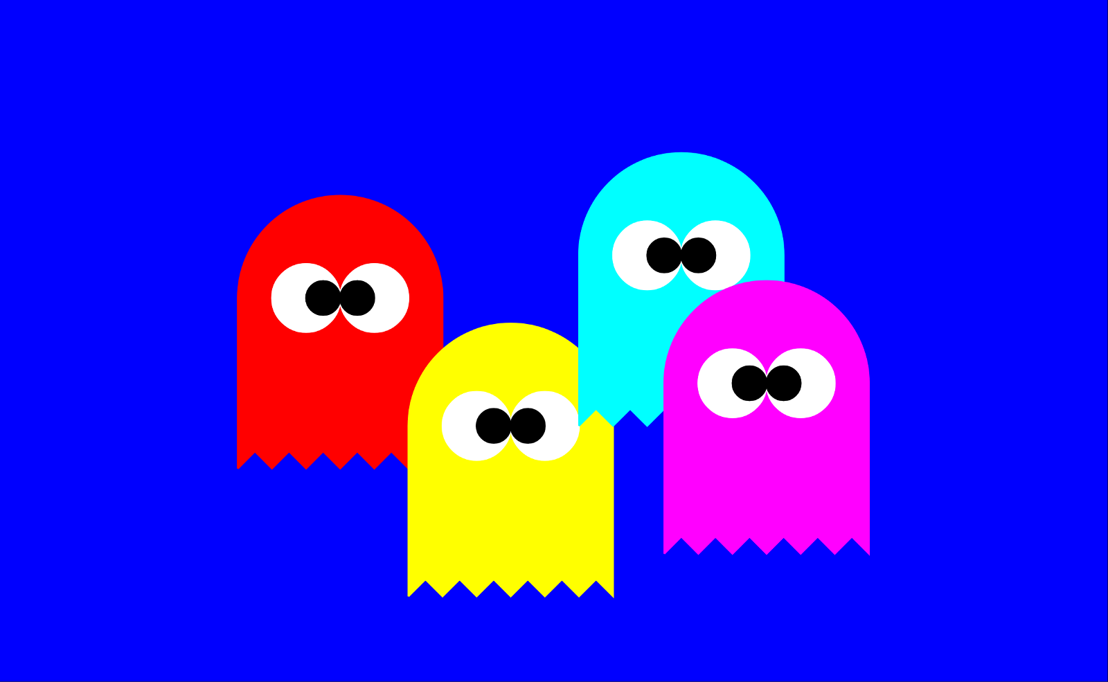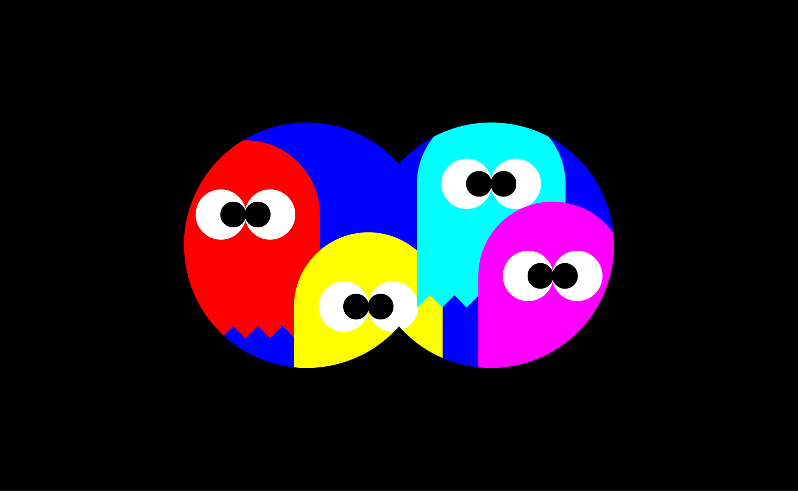 For a simple but fun first example, let’s bring back the Pac-Man ghosts from part 1 and use a clip-path to pretend we’re looking at them through binoculars.