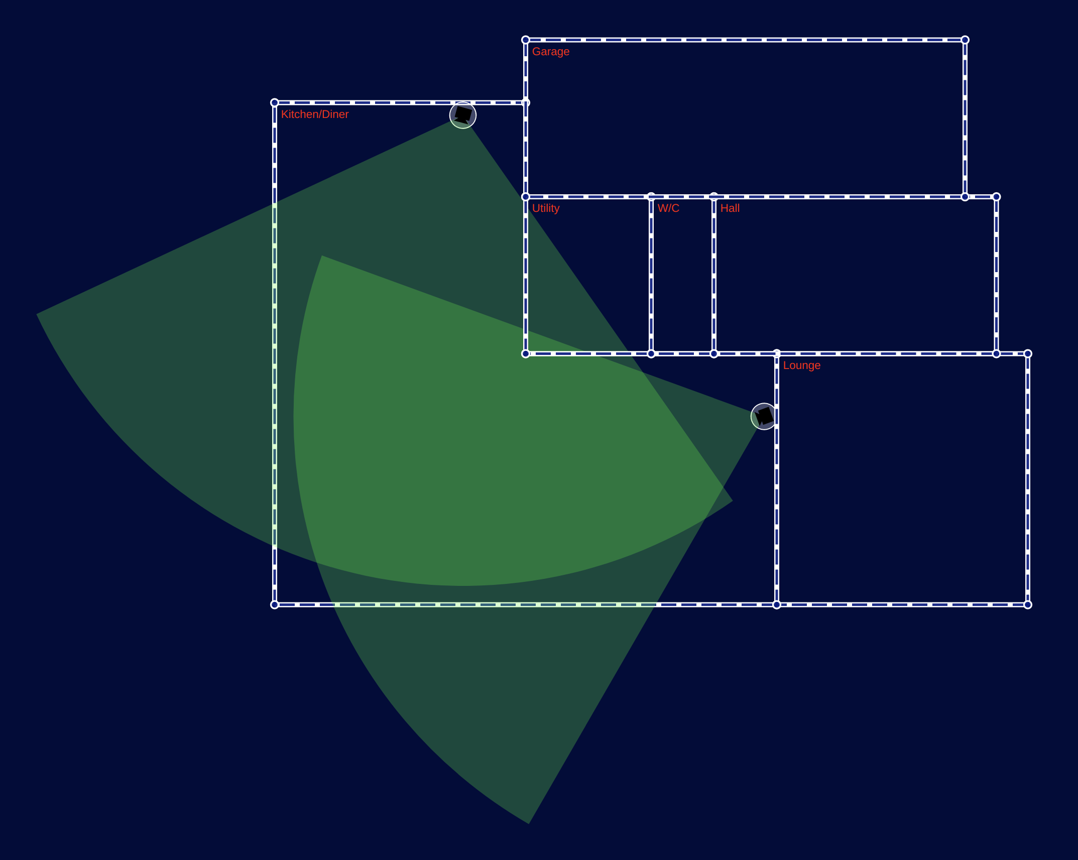 Look closely at the floor-plan image above though, and you’ll see something’s not quite right. Our cameras can’t see through walls any more, but they can see around corners!