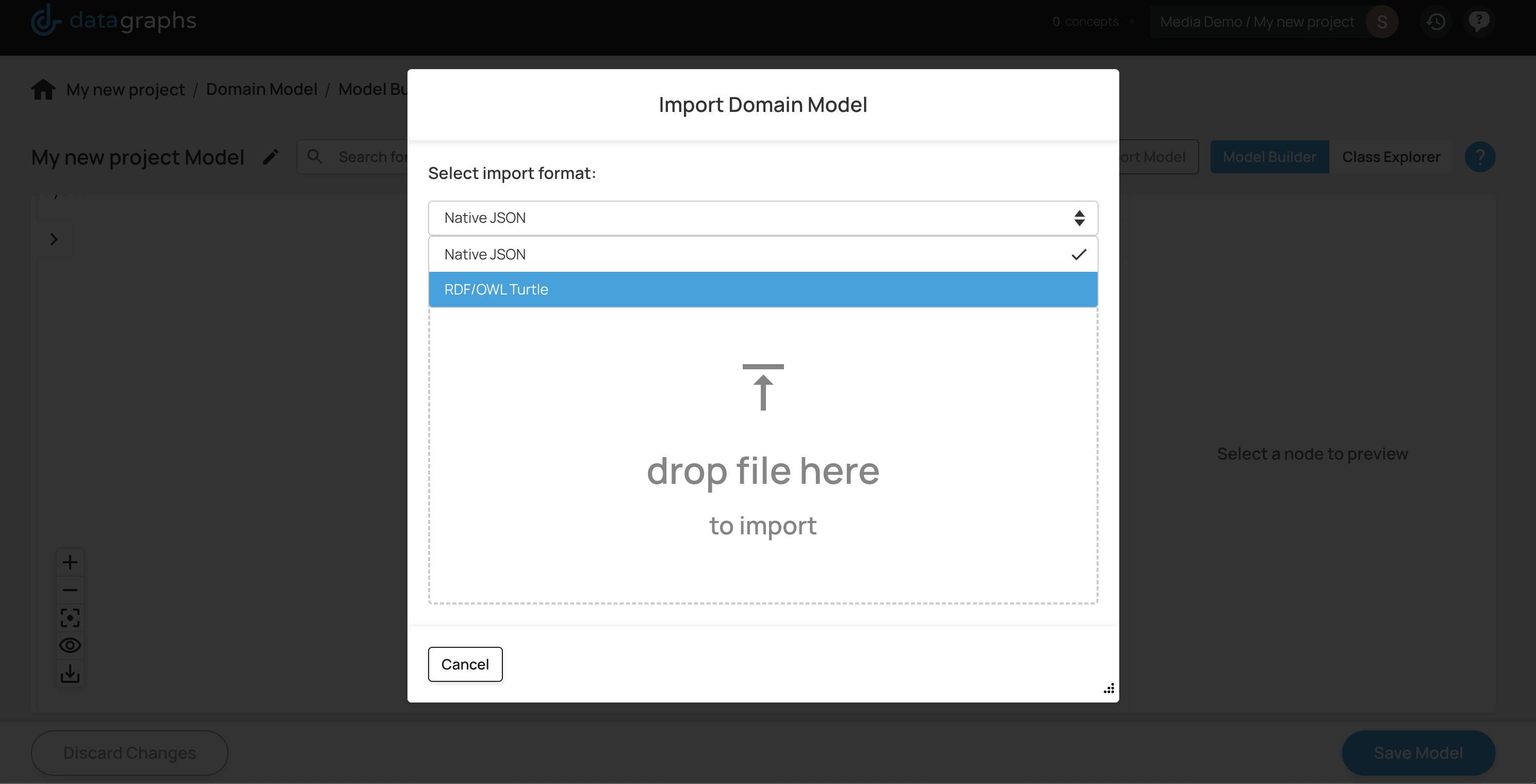 In Data Graphs you have the option of loading in an existing model from our catalogue of models: