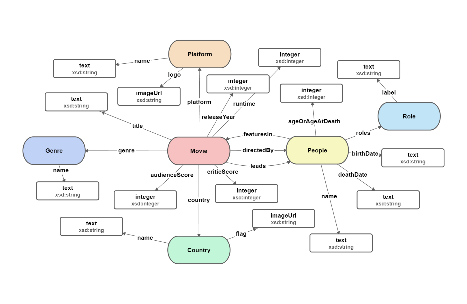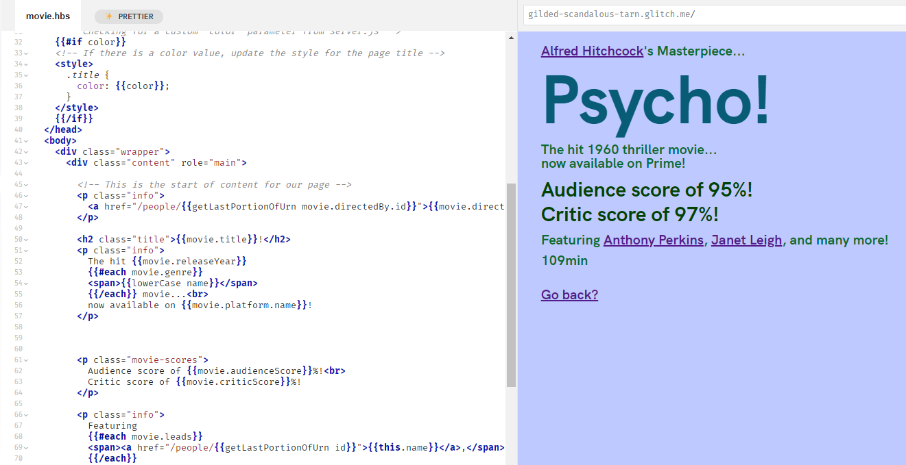 1. Creation of my Data Graph domain model (I chose movies). 2. Populating my model with concepts using spreadsheets and .csv files. 3. Turning my finished model into a functioning website using the API and the glitch website.
